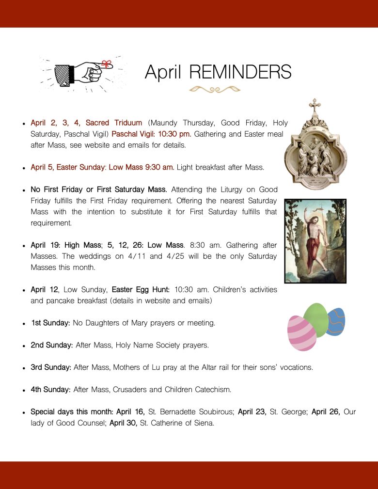April Reminders: Click to find St. Michael’s Masses and events for the month.
