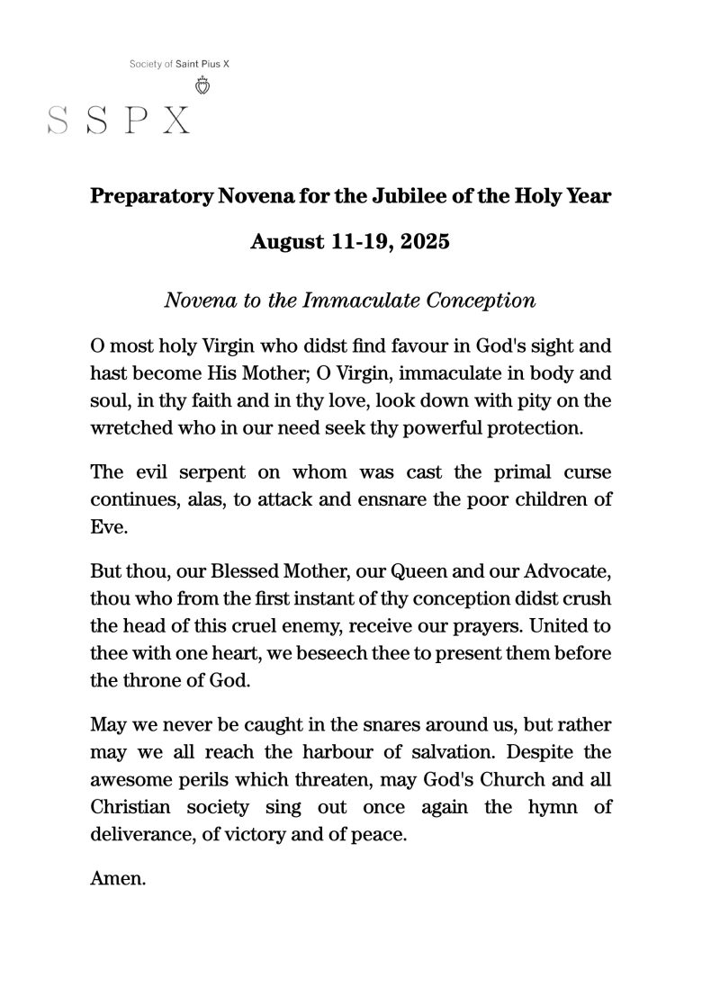 Preparatory Novena for the Jubilee of the Holy Year. August 11-19, 2025